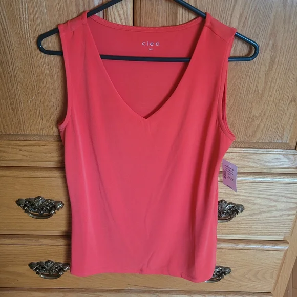 Coral v-neck top. Great for blazers, never worn.