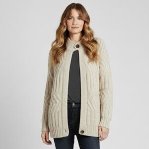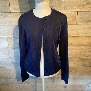 Fabulous 100% cotton embellished cardigan from Rainbow Bridge featuring a winter village and snowflake theme, gold buttons, silver/gold and pearl beads, metallic threads, crochet detail on neckline and front. Very good vintage condition made in Hong Kong. Minor wear on some beads if you inspect closely, minor pilling, a few minor spots that look surficial and will likely come out as shown in photos.