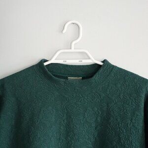 Vntg Lady Footlocker Women's Sz S Green Embroidered Flower Mock Neck Pullover
