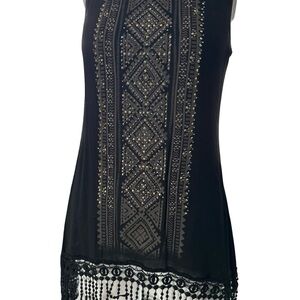 Stylish black top with intricate beadwork. Sleeveless design. Excellent newly used condition! Worn minimally