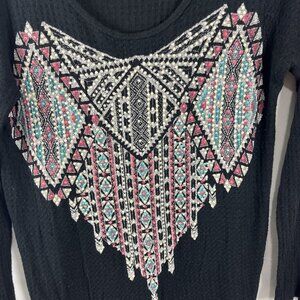 Vocal Embellished Boho-Chic Southwestern Long-Sleeved Shirt Women's Size M