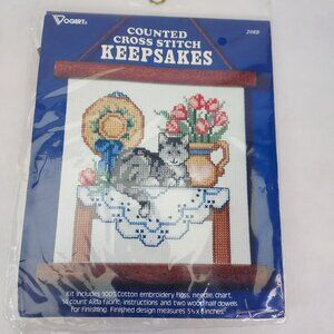 Vogart Cross Stitch Kits Cat Bless County Wood Wall Hanging 5" x 6" Counted NEW