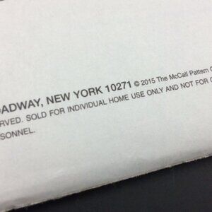 Pattern Info: Please See Photos of Back for Fabric and Notion Requirements.