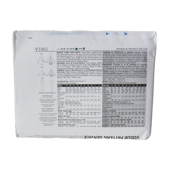 Vogue Tunic and Pants V1061. All Sizes. UNCUT. today's fit. by Sandra Betzina. Pattern from 2008.