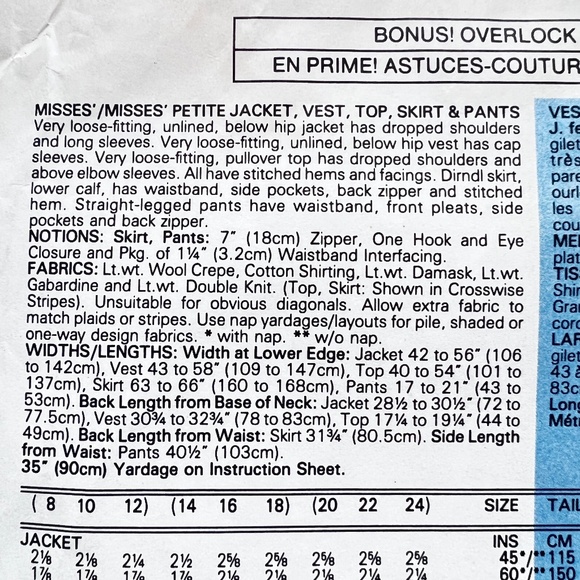 Vogue Sewing Pattern High Waist Pants Pleated Crop Top Jacket 80s Easy 14 16 18