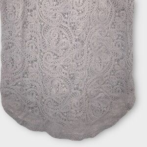 Chic and airy Aritzia Wilfred Volant tank in a soft dove grey colour with a pastel purple undertone. Features delicate paisley lace overlay with full lining, curved hem, and sporty racerback cut. Feminine and elevated—perfect with denim, trousers, or tucked into skirts.