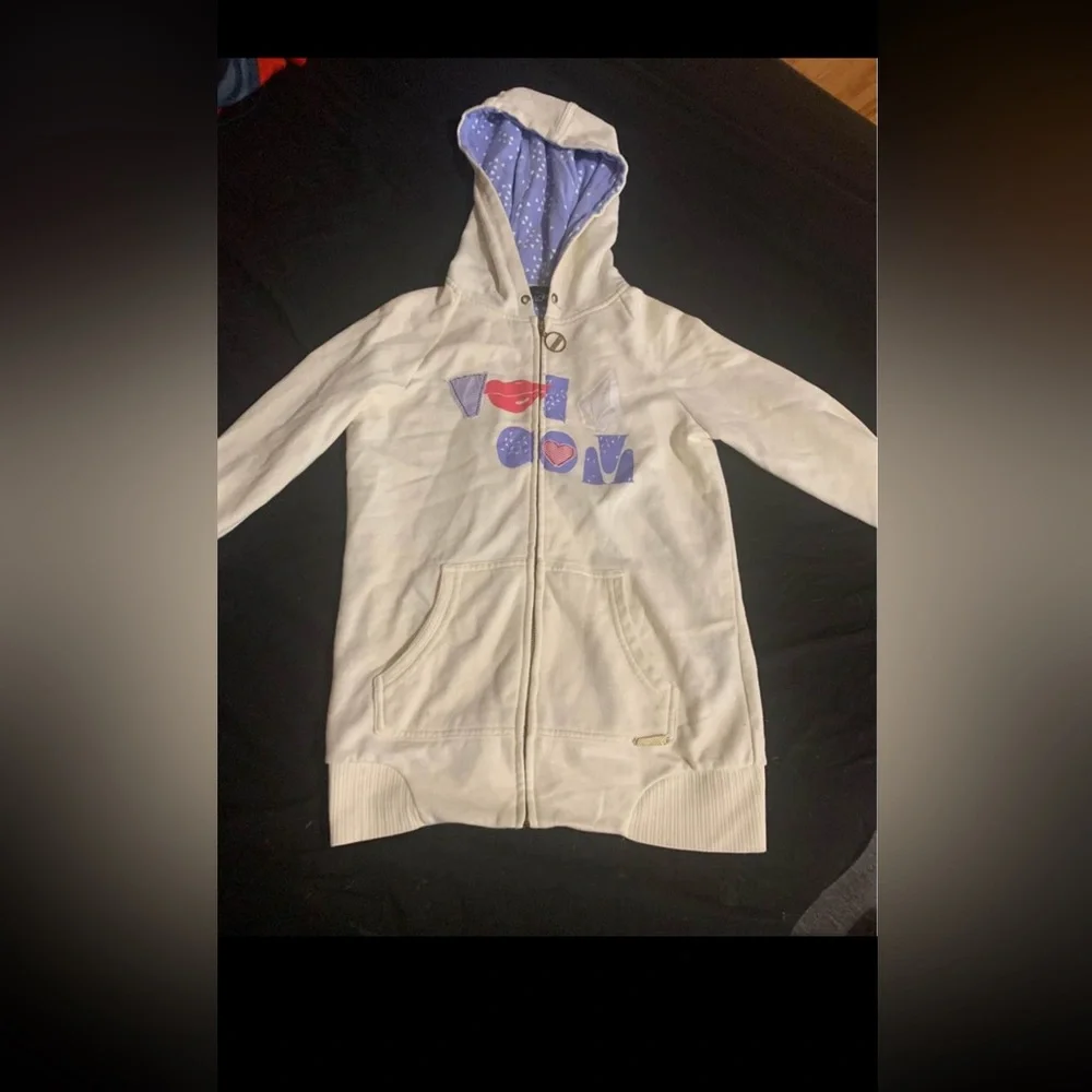 Light yellow Volcom zip up hoodie Size extra small Missing hoodie pull string other than that it’s excellent condition
