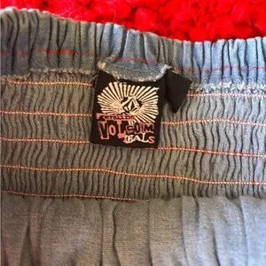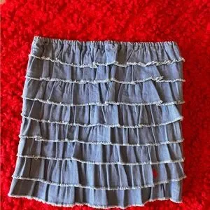 Frayed denim bandeau and strapless top by Volcom, vintage and beautiful. COULD be worn as a mini skirt. Only worn once as a top.