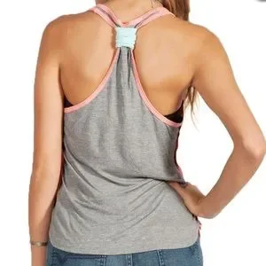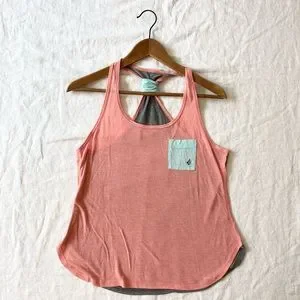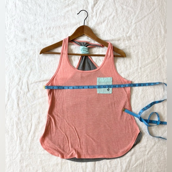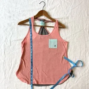 Great tank top by Volcom. Multi coloured with racer back. Size small. No tag so check measurements for fit. In good preloved condition. First two photos are stock photos.