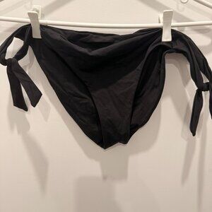 Plain black swimsuit from Volcom. I wore it a handful of times but it no longer fits. I want to say that it's a size XL but it also has tie straps on both pieces to adjust as necessary!