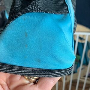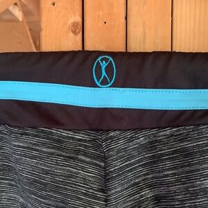 Comfortable gray capris with striking blue trim. Perfect for casual wear.
