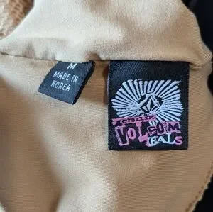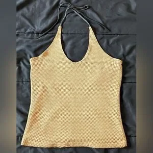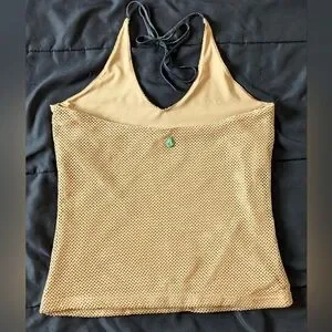 Volcom halter top Cool tan fishnet layer with no rips Small green logo on the back Tie up closure Size medium