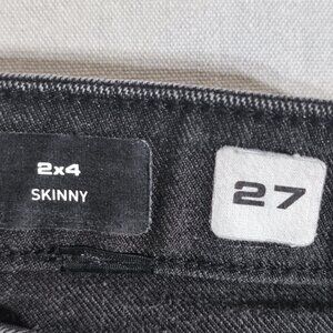 Choose the 2X4 Skinny Fit black jeans for a sleek, modern, streamlined look. The cotton and elastane blend provides the perfect stretch for all-day comfort, while the 12" leg opening creates a tailored, modern silhouette.