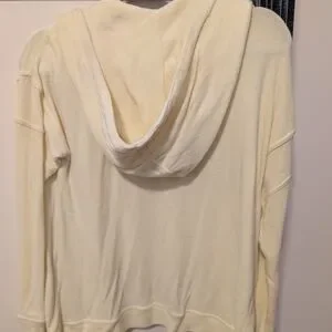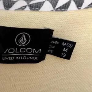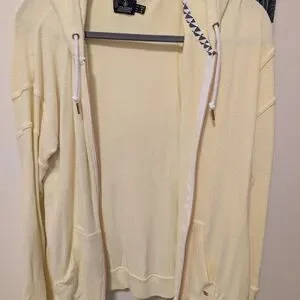 Soft yellow Volcom hoodie. Features drawstring hood and front pockets. Stylish and comfortable. Black stain on hood.