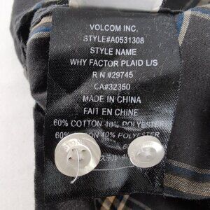 Volcom Men's Gray/Blue/Yellow Button Up Shirt Long Sleeve Box Checker, Large