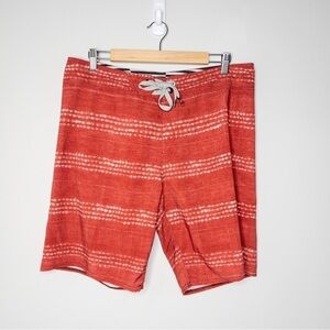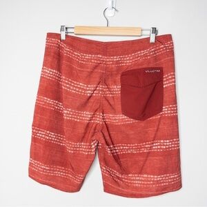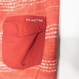 Volcom Mens Red White Stripe Board Shorts Size 34 Beach Surf Coastal Swim Casual