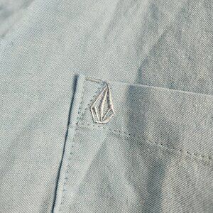 Volcom Men's XXL Light Blue Cotton Button Up Shirt Short Sleeve Modern Fit