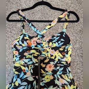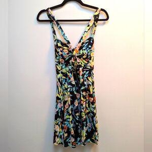 Volcom Mini Skater Dress Floral Large Stretch Fit Flare Cut Out