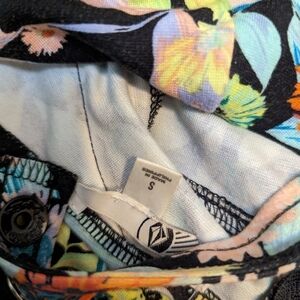 Volcom Dress Women Size Small Black Floral Fit & Flare Skater Cut Out.