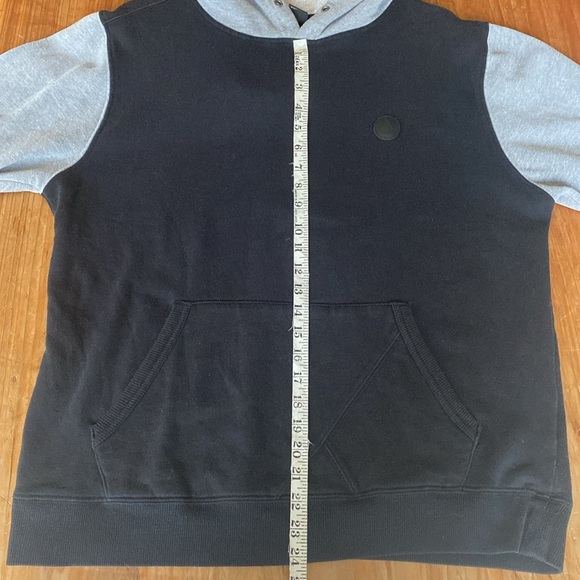 Previously worn by my husband quite a few times. There is some piling and natural wash wear from laundering. You can tell it’s a previously worn hoody. There are no major flaws and only thing to note would be the pull string is missing on the hood. Still lots of life left in this. Measurements are in the photos. Size large and fits true to size.