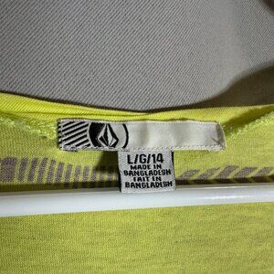 Volcom Neon Yellow 3/4 Length Sleeve Shirt, Womens Size Large