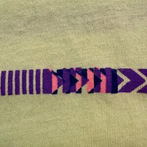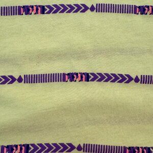 Neon yellow green with purple striped design, 3/4 length Volcom Shirt.