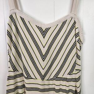 Volcom Popztone Cheveon Retro Skater Dress White Yellow Black Ribbed Size xs