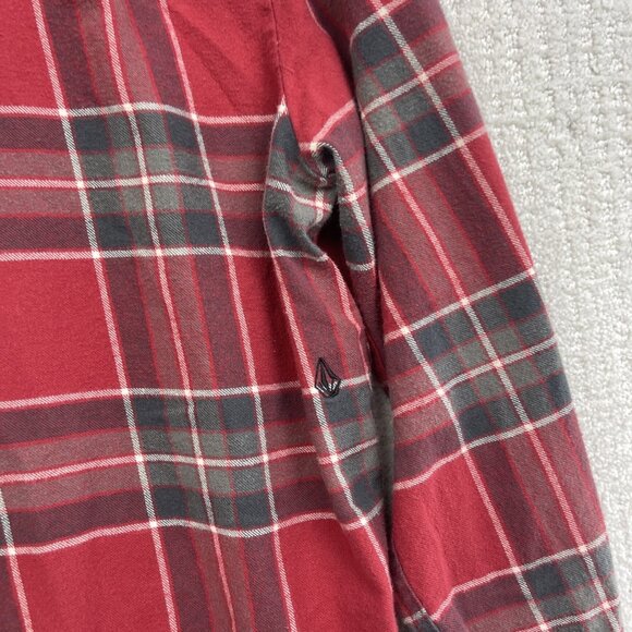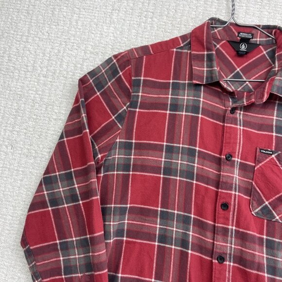 Volcom Red and Black Modern Fit Plaid Flannel Button Up Shirt Men’s Size Large