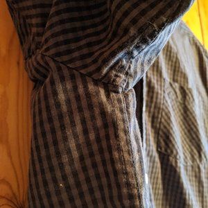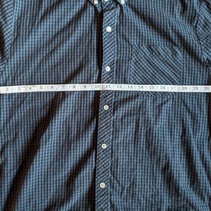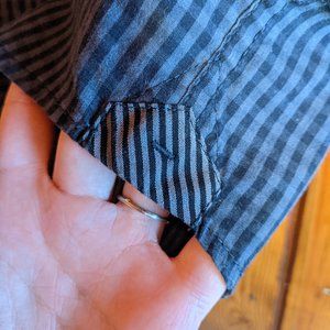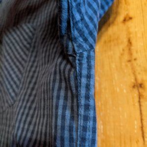 Blue/black short sleeve gingham style checkered shirt, with a nice detail on each side of the bottom hem.