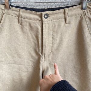 Sand colored stretch chinos perfect for vacation, golf or casual wear. Very gently worn by my husband for one golf weekend. He’s been at the gym a lot and his body has changed so these no longer fit him. Would love to connect them with another guy. Laundered and ready.