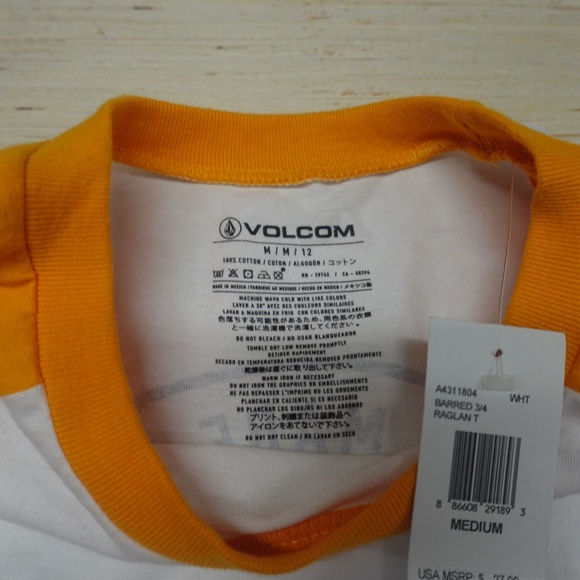 Volcom Stone Made Long Sleeve Raglan Tee White/Gold Size M