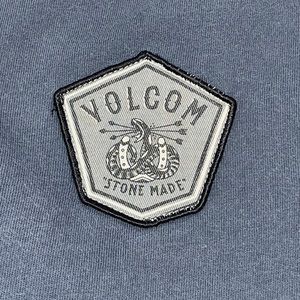 Volcom T-Shirt in grey and black with a Volcom “Stone Made” patch on the chest, small tag near bottom left hem, and logo on the buttons. Small stain noted in the pictures but otherwise in good pre-owned condition.
