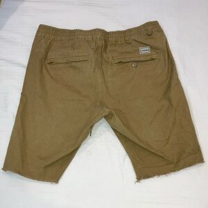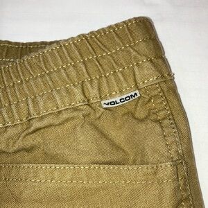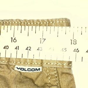 AI description: These Volcom tan shorts feature a classic flat front style, offering a clean and versatile look. The neutral tan color makes them a perfect match for various outfits, ensuring they are a staple in any wardrobe. Ideal for casual occasions, these shorts provide both comfort and style.