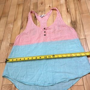 Size small. Volcom. Pink and blue tank top. Light and airy. Buttons up.