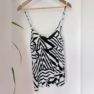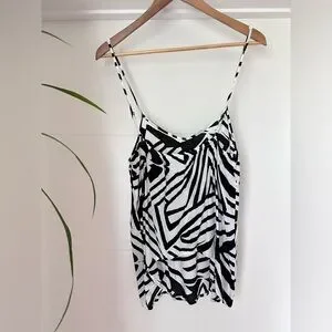 Adjustable straps. Loose fit. Hem line shorter in back and longer in front