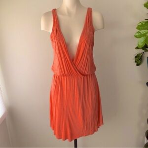 Volcom True To This Deep V Plunge Coral Midi Dress Embroidered Size Medium