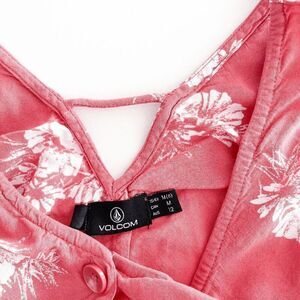 Volcom Womens Forget Yoself Mini Tank Dress Floral Print Button Up Coral Size Medium