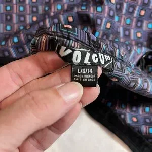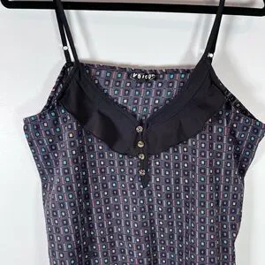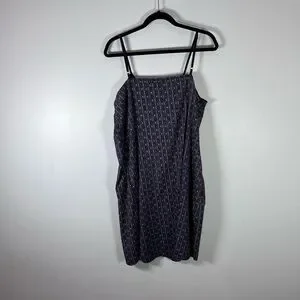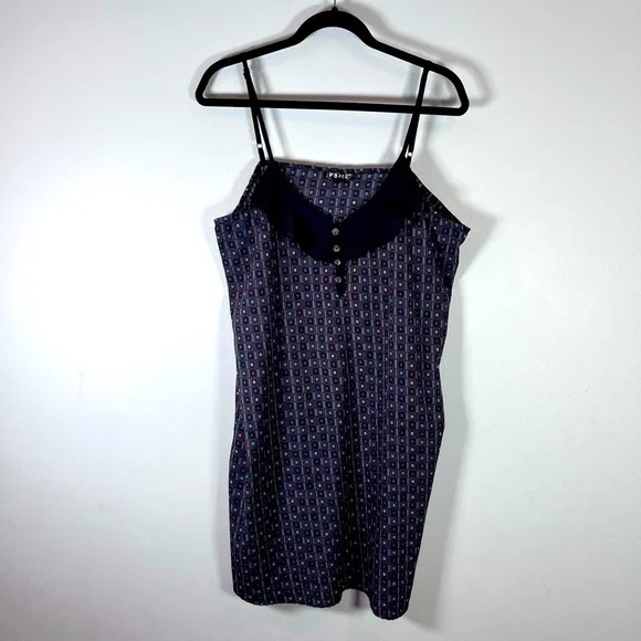 Volcom Women’s Slip Dress Front Ruffle Pockets Geometric Pattern Size Large