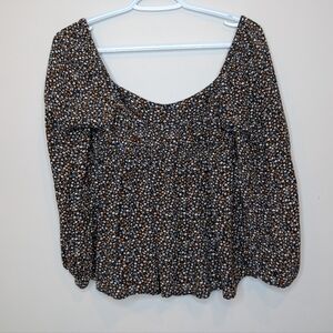 Volcom Women's Small 4/6 Black Floral Peasant Long Sleeve Flowy Top Cottagecore