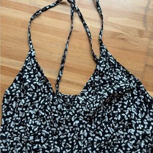 Volcom mini sundress with a black and white cherry pattern Adjustable straps 100% Viscose