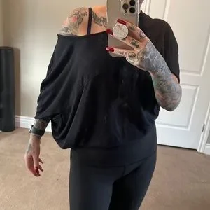 Unique volcom top with cut out arm holes. Can be worn many different ways. Off the shoulder or on both. Fold it short for more of a crop top or pull it down for full coverage.