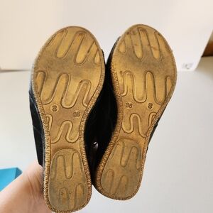 Volks Walkers Black Leather Open Toe Wedges Shoes Sandals Size 36 6 Boho Summer