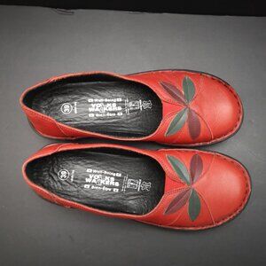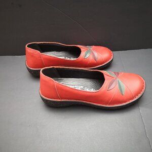 Volks Walkers Ladies Size 39 (Approx. 8-8.5 US) Red w/ Flower Leather Flats