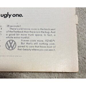 Volkswagen Fastback Print Ad Vintage 1960s All the Beauty of the Ugly One