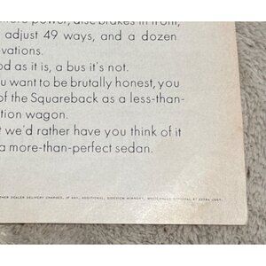 This 1960s Volkswagen Squareback Sedan advertisement highlights the vehicle's unique features and design. Ideal for collectors or automotive history enthusiasts.