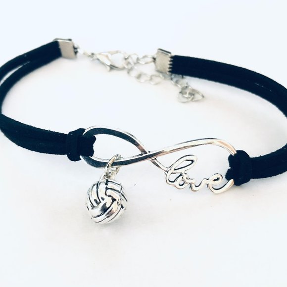 Cute volleyball infinity bracelet with volleyball drop charm. Adjustable bracelet from 7 to 9 inches.