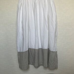Voluminous Linen Maxi Dress White/Grey Colour Block Sundress Made in EU Size XL