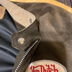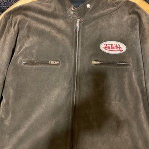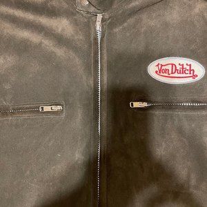 Hi. Your chance to own not only a rare jacket, but the only 1 in the world as it is/was custom made. You MIGHT be able to get in touch with the Von Dutch ppl and put in a custom order for a jacket like this like they used to do but I doubt it. You would probably pay around the same as I did. Exact measurements available upon request np. I am 6'1'', 6 foot two on a good day lol. The jacket is a Suede like leather, very soft and smooth and has very comfortable black silk interior. The jacket fits perfectly, perfectly custom tailored. Not too short, not too long, perfect. If you're wondering if its warm, it is warm. I have only worn it a couple times, twice this year in Ottawa, Ontario, Canada. Once on a day when it was -5'c minus 5 degrees celcius and on a day about a week ago in March 2022 when it was +3 celcius. Its meant for Spring/Fall weather -5c to +25c.