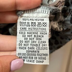 Women's Von Zipper hooded jacket. Size 12. Grey and brown leopard print. Full zip closure. Drawstring hood. Side pockets. Long sleeves. Elastic cuffs and hem.