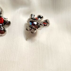 Voodoo Doll Necklace & Earings Set Silver tone. Red belly gem Adjustable chain length